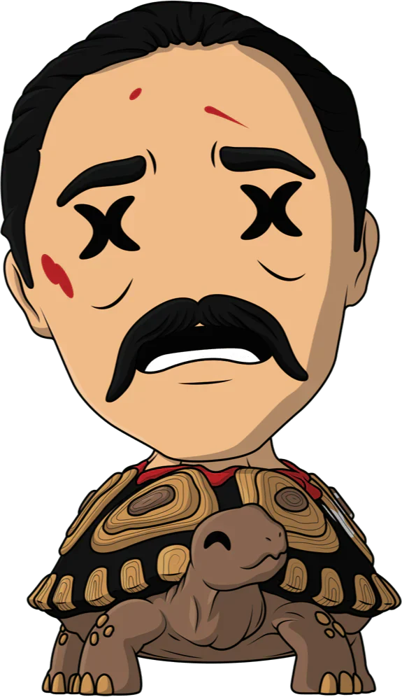 You act as if you have never seen a head cut on a turtle before. Slowly and regularly do not always win the race ... When Hank discovers the turtle head mounted, walking on a turtle with the Hola Dea message painted on the shell, this sends a clear message that the one they are looking for does not play. The character of Danny Trejo de Tortuga (which translates into Turtle) dies in this emblematic scene. With a carved mustache and blood splashes on the face and the base of the neck, this little turtle is an excellent companion for your office. The packaging presents the DEA in the middle of the desert looking at the turtle walking through twins.