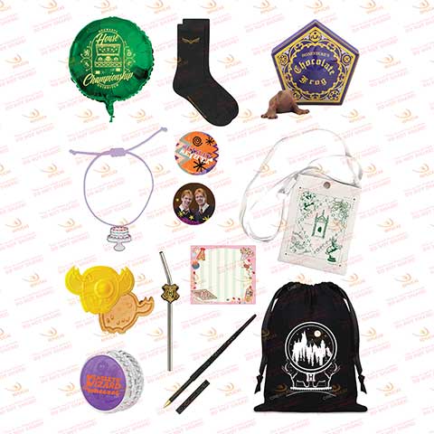 contains shopping bag, pinches, necklace, gloves, yoyo, socks, bags, bracelets, stickers, stickers, lenticular badge, cookie cutter, puzzle, sleeping mask, notepad, keychain , cord pocket, foam magnet, gum, pen-tank, mylar ball, reusable straw, mirror. span>