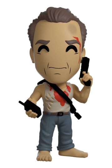 I promise that I will never think of getting into a large building again. John stands barefoot, in rolled up jeans and a torn and bloody white tank top, ready to retaliate. He holds a pistol in one hand and a talkie-talkie in the other. A machine gun is tied on his back. Blood flows under the scar above its eyebrow and a bruise appears on its forehead. The exterior of his double-walled planter shows John reducing a skyscraper on fire, the interior is illustrated with a swallowing of flames.