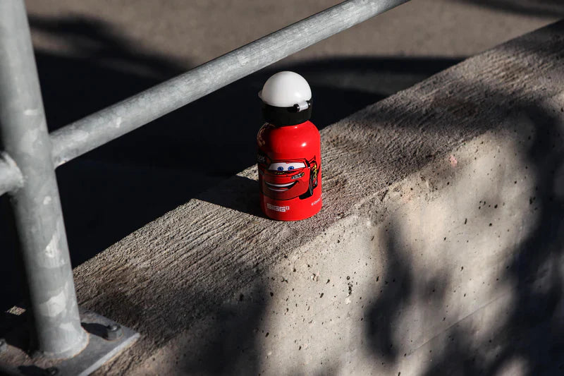 Disney's "Cars" hero Lightning McQueen graces this water bottle, and thanks to him, his fans won't forget to quench their thirst. This high-quality, reusable aluminum water bottle with its Cars design is very light to carry, making it ideal for both school and leisure activities. The material is free from harmful substances such as endocrine disruptors and phthalates. The strong inner seal withstands high pressure (e.g., bumps) and guarantees a pleasant, safe, and trouble-free refreshment. The child-resistant cap also makes the bottle safe to transport and can accompany them on every imaginable race track! This SIGG product is ClimatePartner certified.