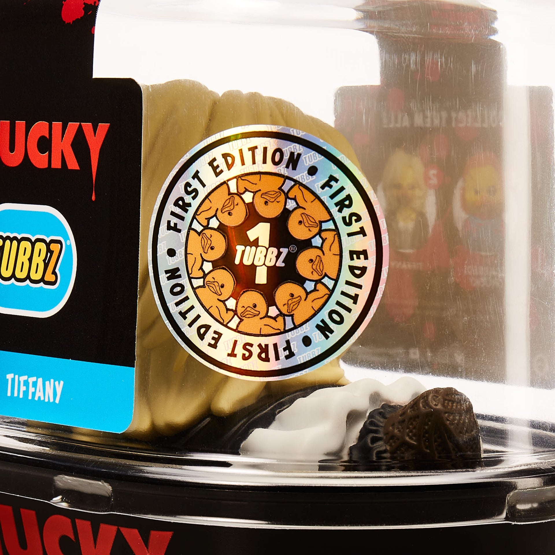 • A "First Edition" TUBBZ. Comes in a collectible bathtub, with the Chucky logo, "First Edition" printed on the duck base and a sticker on the packaging.