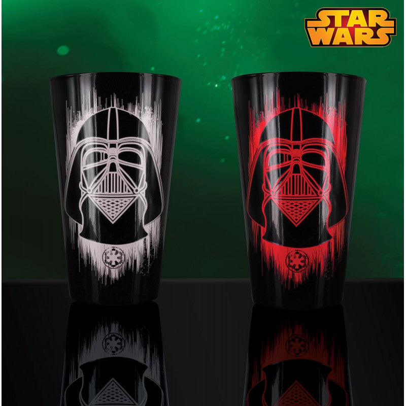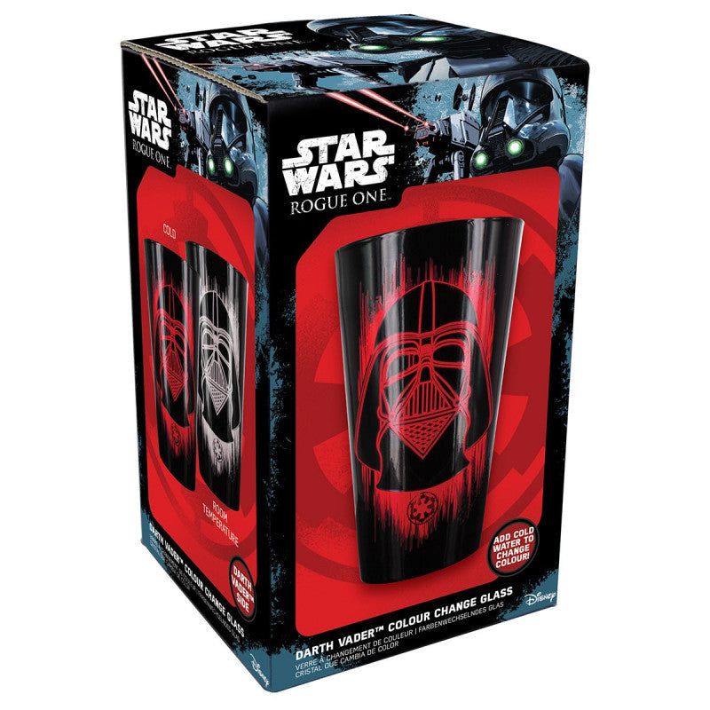 This officially licensed Star Wars Rogue One glass features Darth Vader and the Death Star. With its thermo-reactive surface, pour a cold beverage into it and the prints will turn red.