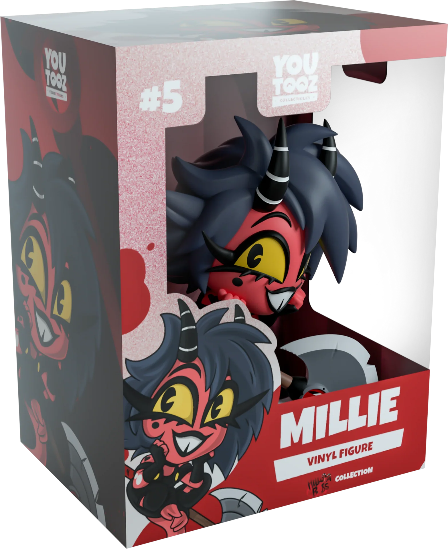Un expert en armes, un assassin et surtout un mari adoré ? Que demander de plus !? Oh, attendez, un début sur Youtooz bien sûr ! Et Moxxie n’est pas du genre à décevoir ! Accroupi à 4,7 pouces de hauteur sur des pieds sabots et levant un pistolet orné dans sa main droite tandis que la gauche étend ses doigts fins, un sourire aux dents acérées s'étend sur son visage rouge alors que les sourcils inclinés reposent sur des yeux jaunes profonds. Avec des touffes de cheveux blancs sortant d'entre ses cornes rayées bouclées et de chaque côté de sa tête, il porte un nœud papillon rouge vif et un long manteau noir fluide qui se déploie aux extrémités tandis qu'une longue queue pointue serpente sur le côté. L'extérieur de leur emballage présente une silhouette rouge foncé sur un fond sombre, tandis que l'intérieur les entoure de rayures marron qui rappellent un papier peint sale. La pochette de protection est ensuite ornée de rayures diagonales noires et blanches et imprimée du logo « Helluva Boss » puisque leur silhouette est visible à travers la grande fenêtre d'affichage transparente située sur le devant. Cet objet de collection est livré dans une pochette extérieure de protection mate en relief et dans un protecteur en plastique de taille personnalisée pour une protection maximale pendant l'expédition.