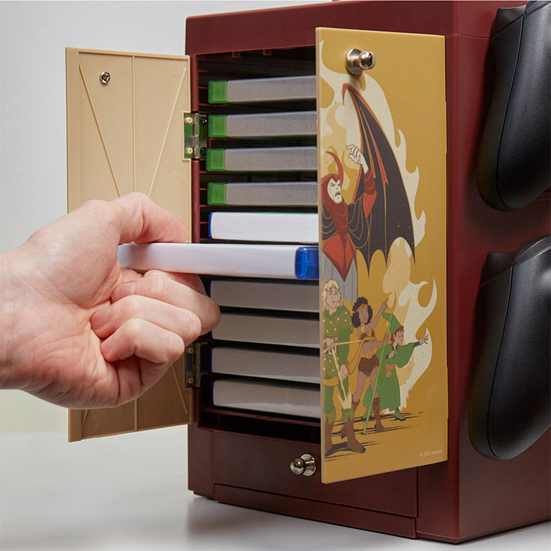 Si votre genre préféré est la fantaisie, alors organisez-vous avec ce casier de jeu Dungeons & Dragons pour garder les accessoires de jeu propres et bien rangés. Peut contenir jusqu'à 10 de vos jeux Xbox One/Xbox Series X|S, jeux PS4/PS5 ou films préférés, il dispose également d'une tonne d'espace pour stocker tous vos éléments essentiels de jeu, qu'il s'agisse de manettes, de câbles ou d'autres accessoires.