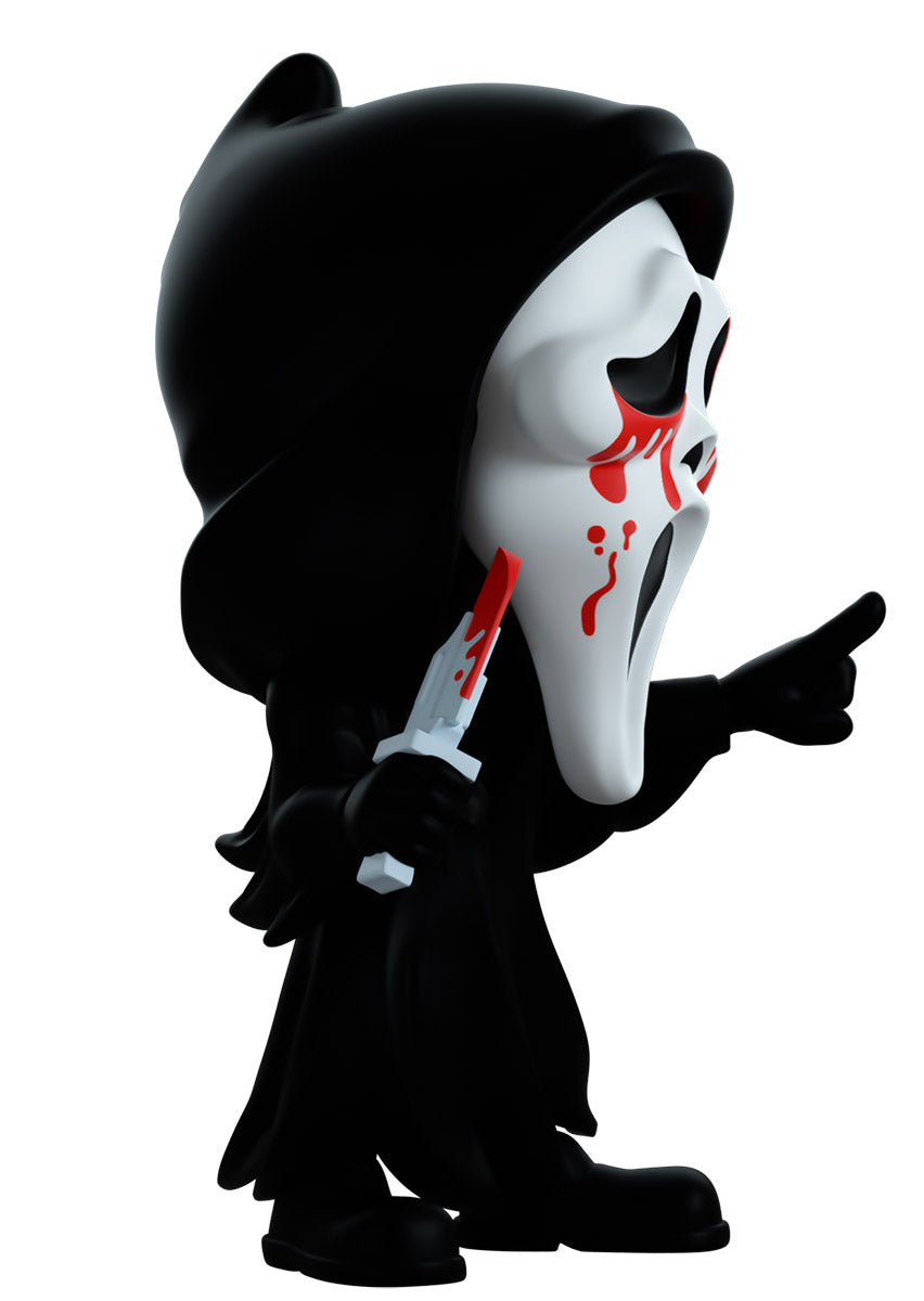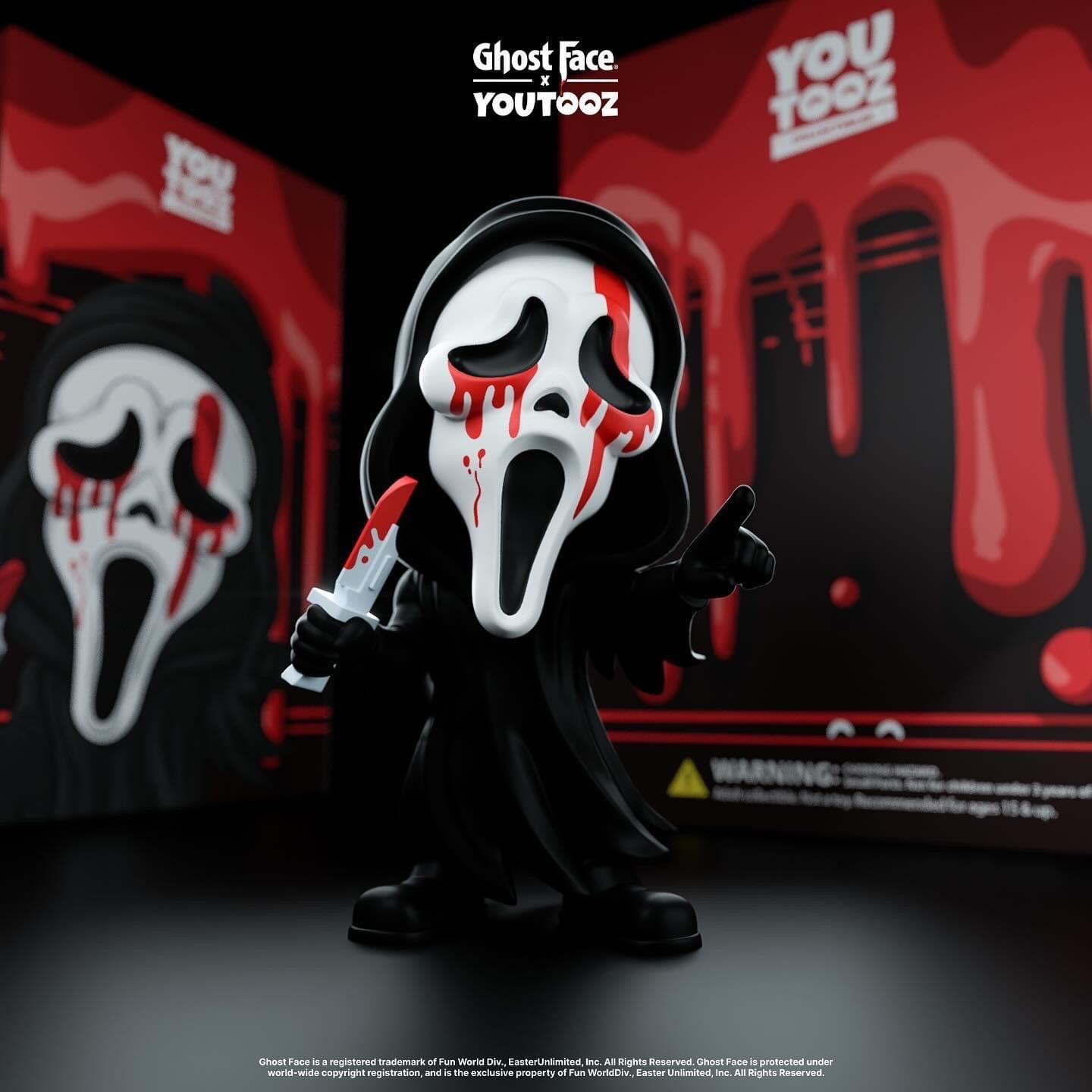 Ghost Face est là et il vise Youtooz comme sa prochaine victime ! Mesurant 4,7 pouces et pointant un doigt ganté vers l'avant d'un air menaçant, vous assurant que vous savez que vous êtes le prochain, il brandit un couteau de chasse imbibé de sang dans sa main droite, fraîchement sorti de sa dernière victime. Avec une cagoule noire ample repliée jusqu'à un point à l'arrière de sa tête et son ouverture reposant autour d'un masque blanc emblématique, sa bouche béante s'étire en un cri allongé tandis que du sang rouge vif coule de son sommet et coule de l'œil enfoncé. des trous. Présentant une silhouette qui imprègne la plus vraie forme de peur, une longue robe en lambeaux enveloppe son corps avec ses extrémités dentelées tourbillonnant autour de ses bras et de ses jambes. L’extérieur de son emballage voit une épaisse couche de sang couler du haut. Alors que l'intérieur est un fond noir avec de fines lignes rouges et des éclaboussures de sang sur ses murs, cela se poursuit sur l'emballage de protection où sa silhouette peut être vue à travers la grande fenêtre transparente située à l'avant. Cet objet de collection est livré dans une pochette extérieure de protection mate en relief et dans un protecteur en plastique de taille personnalisée pour une protection maximale pendant l'expédition.
