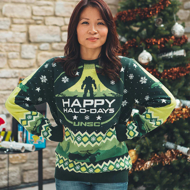 Vous êtes peut-être un super soldat amélioré biochimiquement et cybernétiquement, mais cela ne signifie pas que vous devez passer votre Noël enfermé dans une armure verte délabrée. Célébrez les fêtes de fin d'année comme un vrai Spartiate avec ce pull de Noël 100 % tricoté. Conçu avec une esthétique nordique traditionnelle, ce vêtement d'hiver est définitivement un article que tout fan de Halo devrait avoir sur sa liste de souhaits Chrimbo !