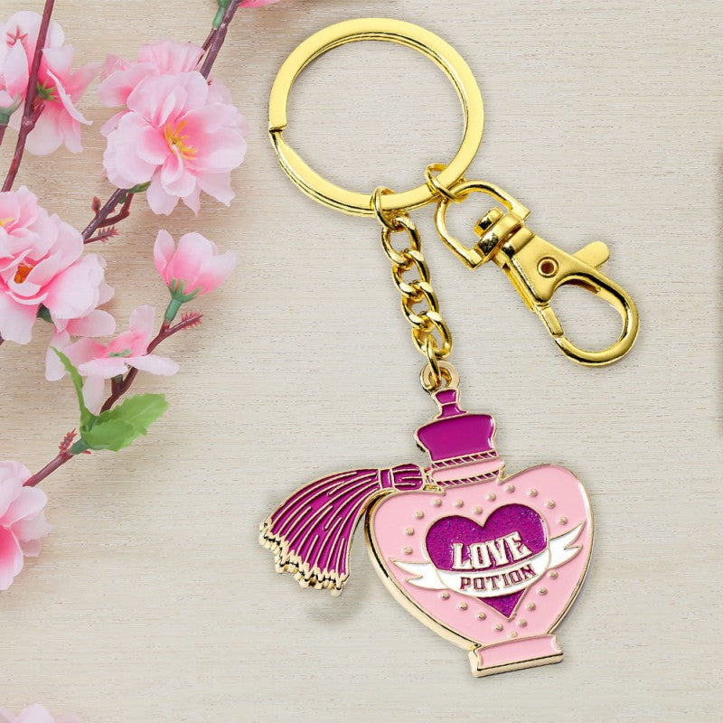 UN PORTE-CLÉS MÉTAL À L'EFFIGIE D'UN PHILTRE D'AMOUR.