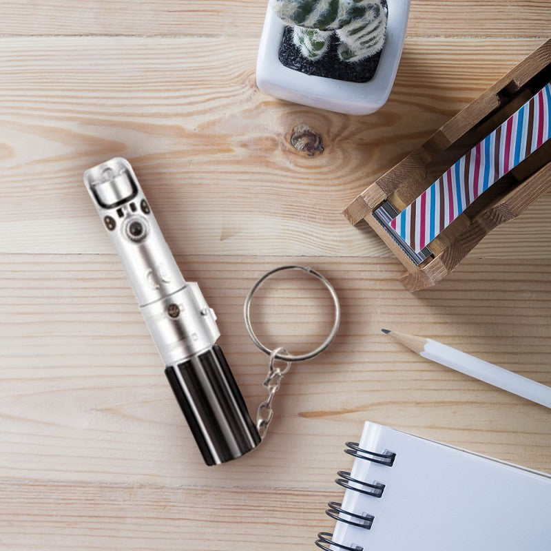 Réplique du sabre laser de Luke Skywalker, ce porte-clés possède une petite torche à led bleue (pour situer la serrure facilement).