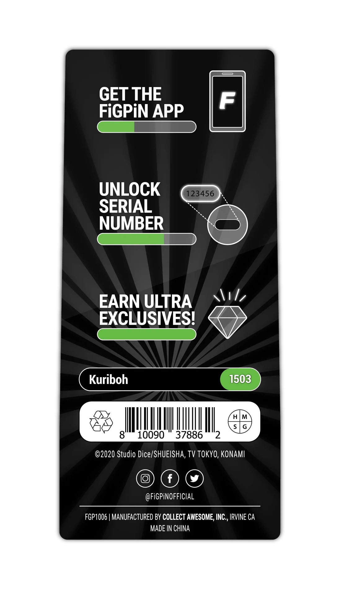 Collectionnez génial. Partagez et affichez vos FiGPiNS n'importe où et à tout moment grâce à nos supports d'épingles innovants et à nos vitrines de qualité musée. FiGPiNS peut être affiché comme votre silhouette la plus convoitée ou porté comme votre accessoire préféré. Épinglez-les sur votre sac ou veste préféré, ou affichez-les simplement sur votre bureau. Peu importe où vous les placez, vous serez sûr de vous démarquer ! Chaque FiGPiN est fabriqué en alliage de zinc moulé incrusté d'émail dur et est fini avec un revêtement en nickel électrolytique. Tous les FiGPiNS comprennent un numéro de série alphanumérique unique gravé au dos, ce qui rend chacun d'entre eux unique. Avec l'application FiGPiN, vous pouvez déverrouiller le numéro de série pour découvrir la rareté de votre FiGPiN et commencer à gagner des points en tant que fier propriétaire d'un superbe FiGPiN. Disponible dès maintenant pour les appareils Android et iOS !
