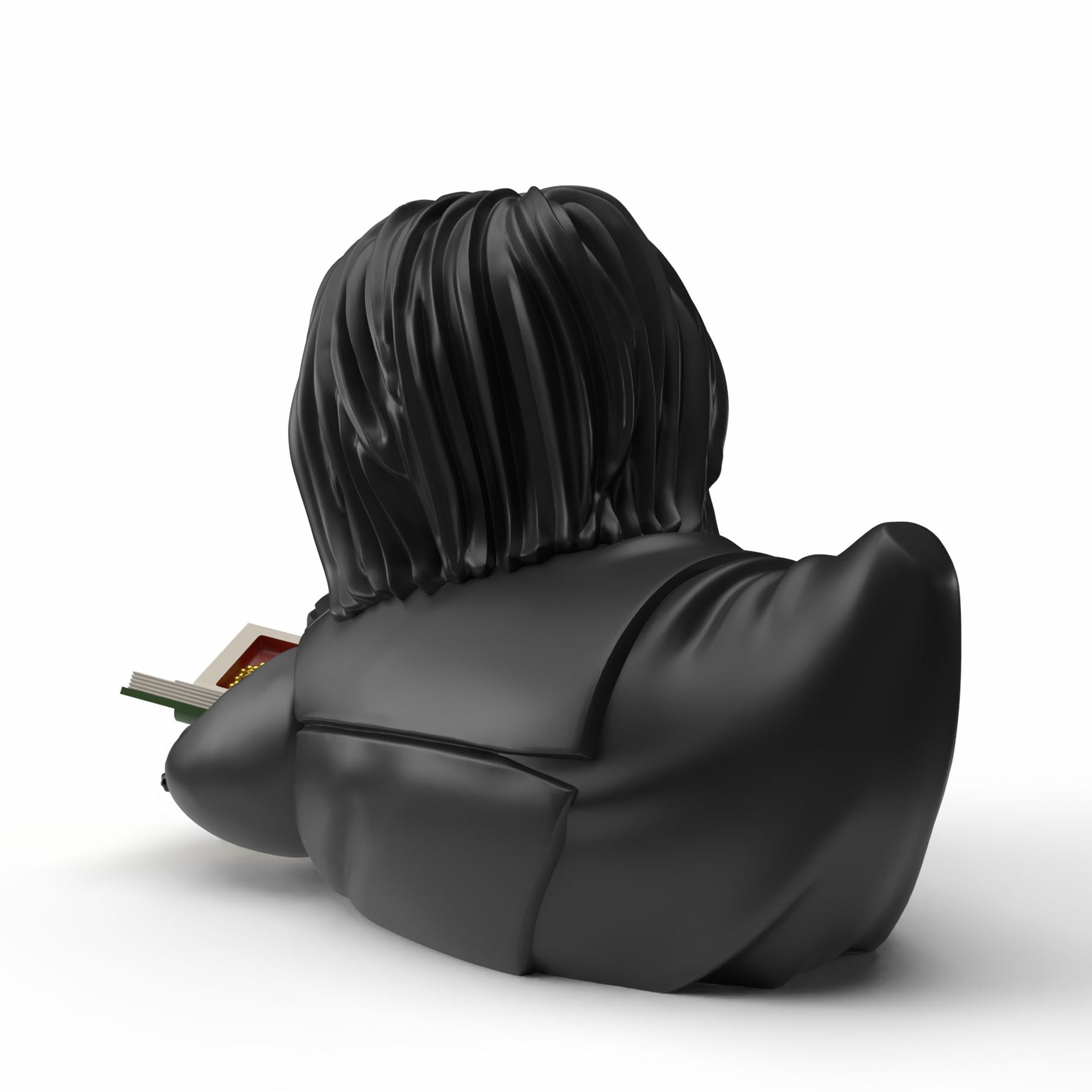 Costume sur mesure. Regard tactique. Concentration absolue. John Wick débarque vêtu d'une tenue noire impeccable, l'aile pleine de pièces d'or et le chagrin caché sous chaque souffle. Ce canard édition collector ne rate rien. Il se souvient.